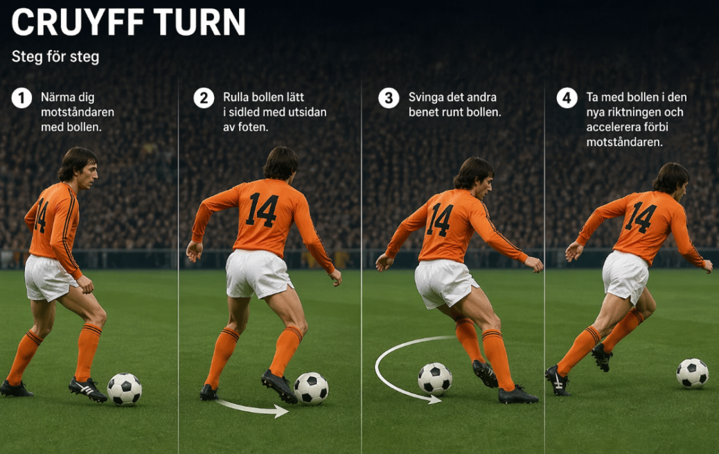 - Dra bollen bakåt med insidan bakom stödbenet och spring åt motsatt håll.